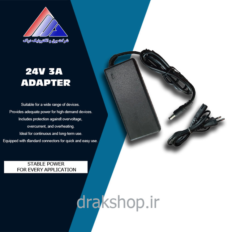 ابعاد آداپتور سه آمپر: 30×50×115 میلیمتر
