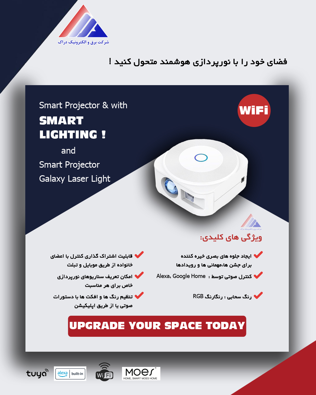 پرژکتور و رقص نور هوشمند کهکشانی و لیزر وای فای _MOES
