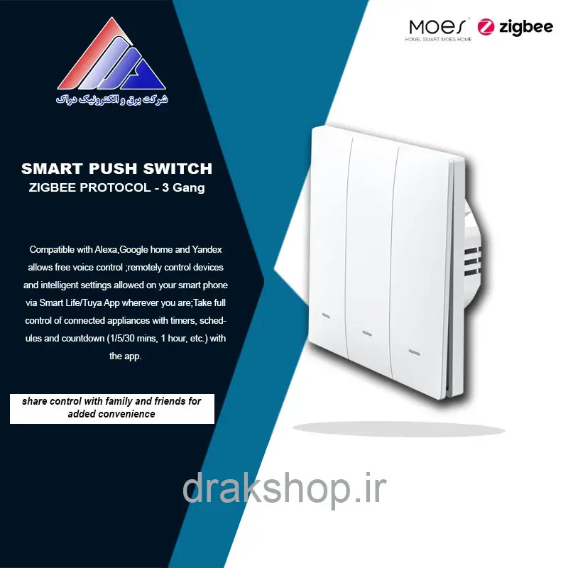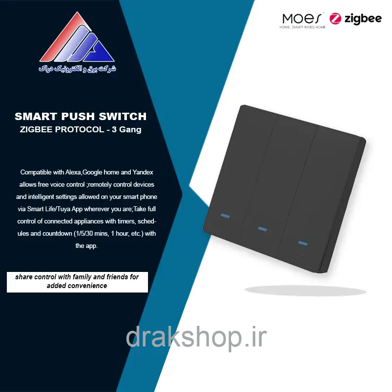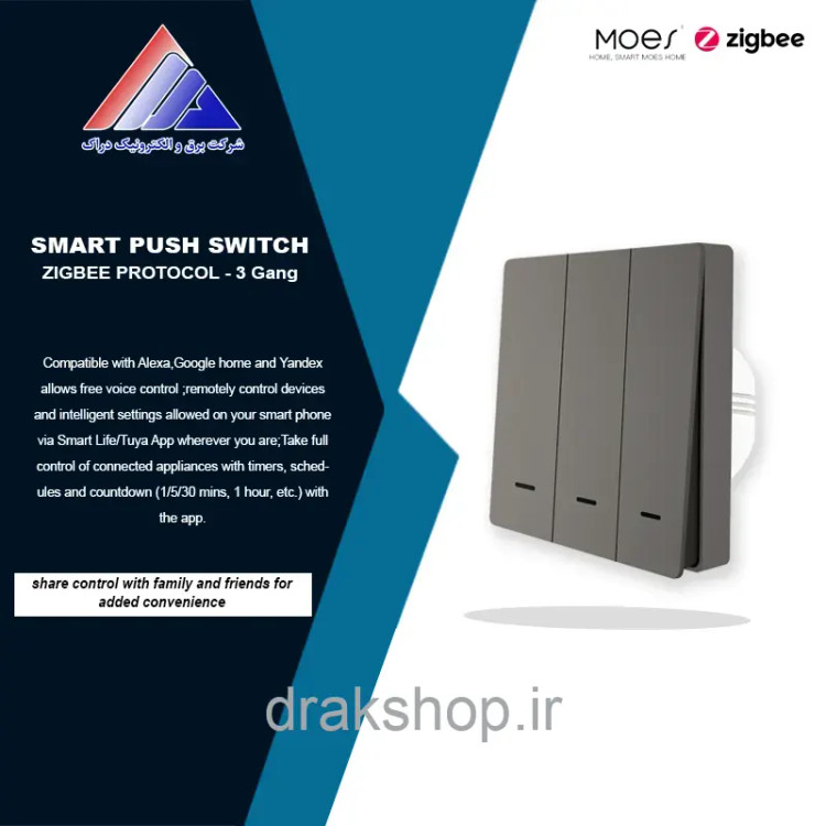 کلید سه پل فشاری هوشمند MOES پروتکل زیگبی